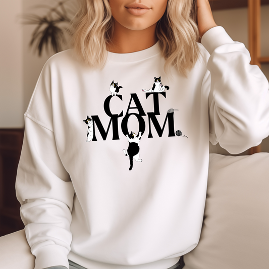 Cat Mom Sweatshirt with Playful Cat Design | Cozy Cat Lover Sweater