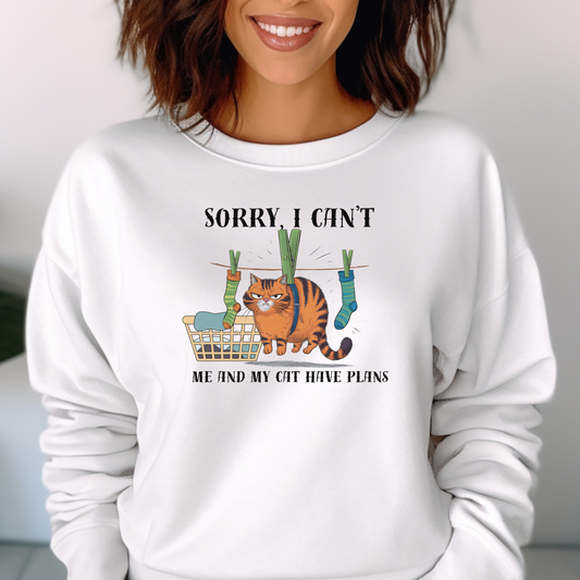 Sorry, I Can't - Me and My Cat Have Plans Sweatshirt | Funny Cat Lover Sweatshirt