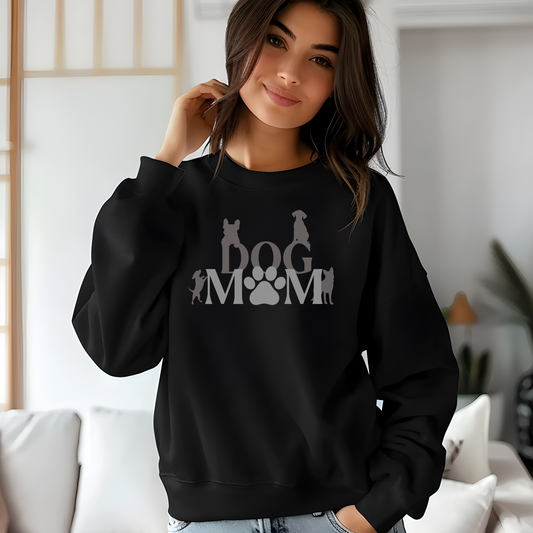 Dog Mom Sweatshirt with Dog Silhouette Design | Cute Dog Lover Sweater