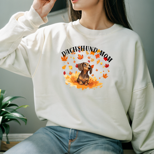 Dachshund Mom Sweatshirt with Autumn Leaves Design | Dog Lover Sweater