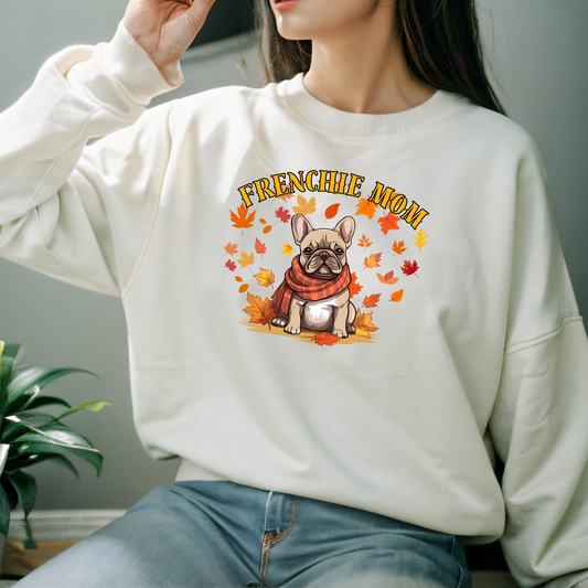 Frenchie Mom Autumn Leaves Sweatshirt | French Bulldog Fall Dog Lover Sweater