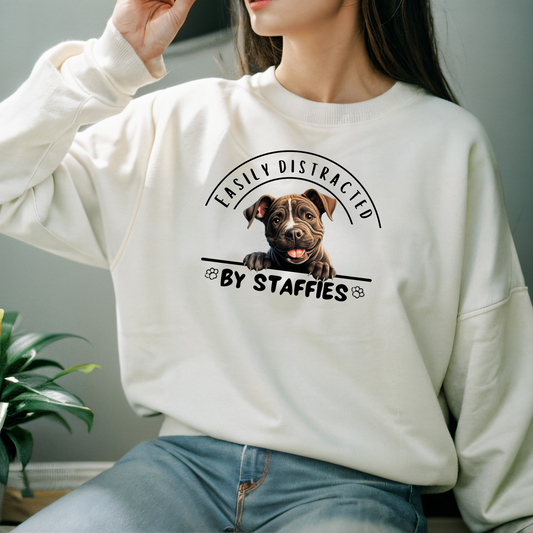 Easily Distracted by Staffies Sweatshirt | Funny Staffordshire Dog Lover Sweater